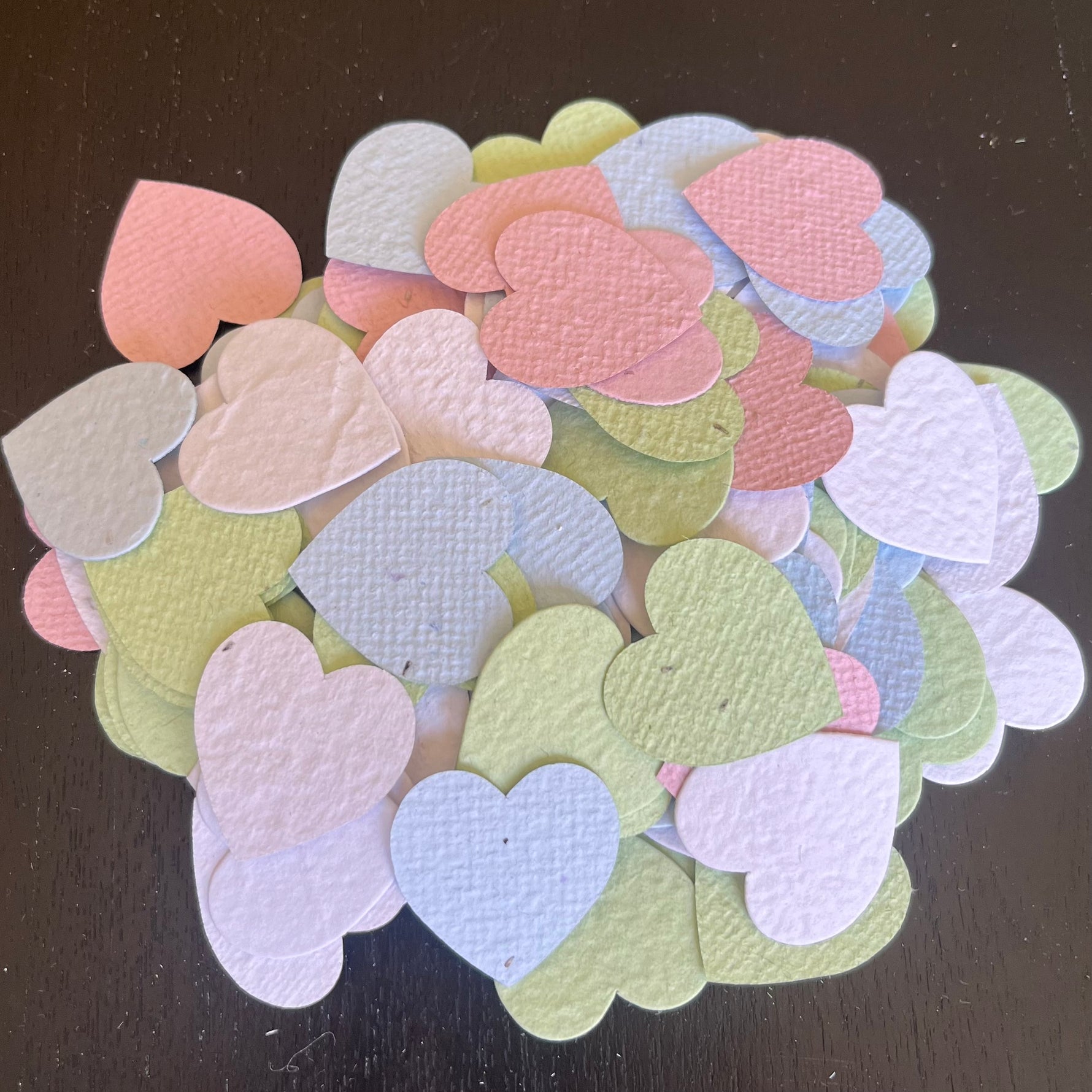 Sweet little heart confetti, made from recycled paper and Swan River Daisy seeds.