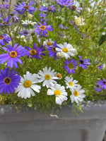 Swan River Daisy (Brachyscome iberidifolia), Chamomile (Chamomilla recutita), Alyssum (Lobularia maritima), Ageratum (Ageratum houstonianum)
